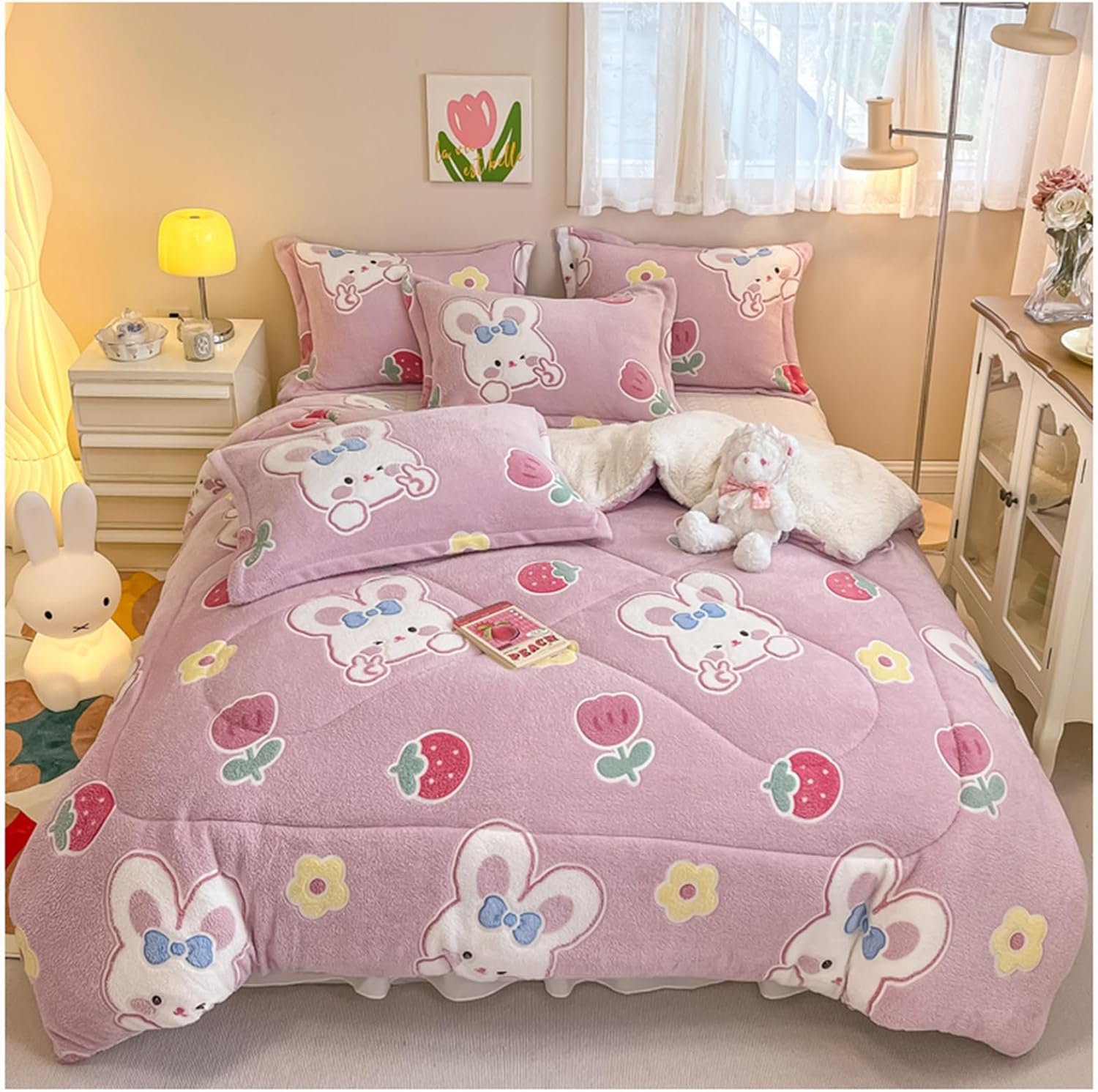 - [Double-Sided Warm]: Double-sided warm quilt, A version of flannel fabric has a delicate and soft texture, and the dense fluff does not shed. B version lamb fleece fabric, moisture-absorbing and breathable, suitable for sleeping naked, with delicate touch and skin-friendly warmth.