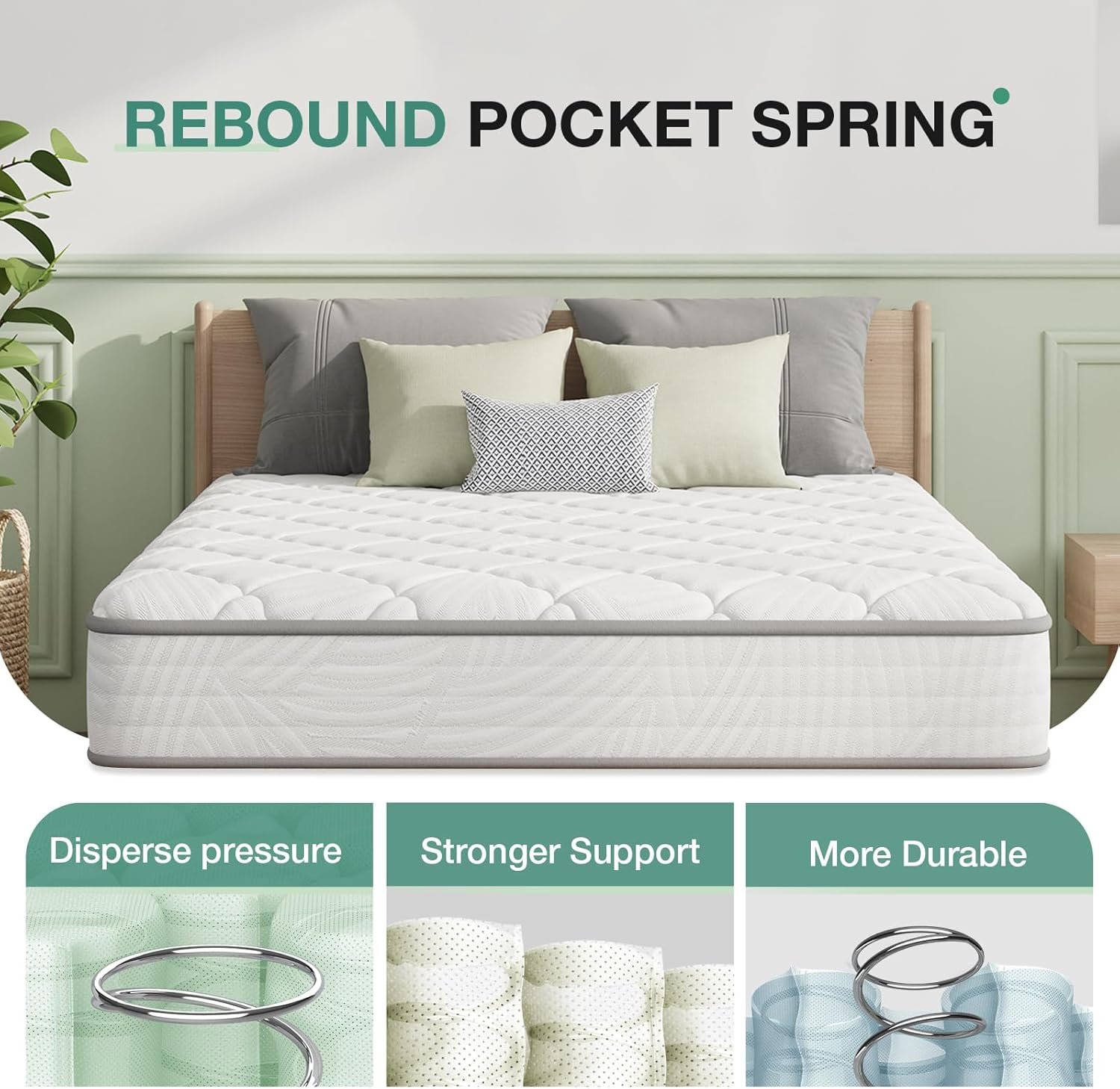 - 【Get Quiet & Deep Sleep】Individual pocket spring mattress is also typically good at shock absorption since springs work independently to lower motion transfer between you and your partner while sleeping. Plus, layers of comfort foam are added to help minimize sleep disruptions for a restful sleep.